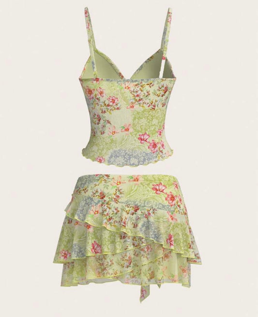花柄キャミソール&ローウエストスカートセット