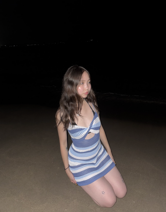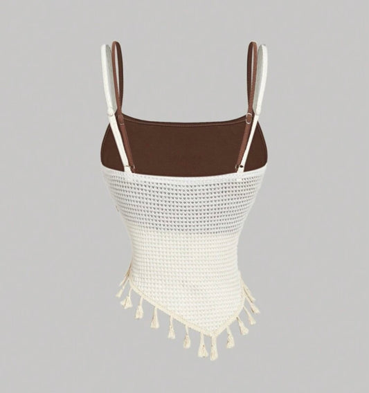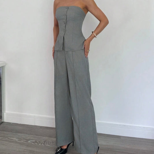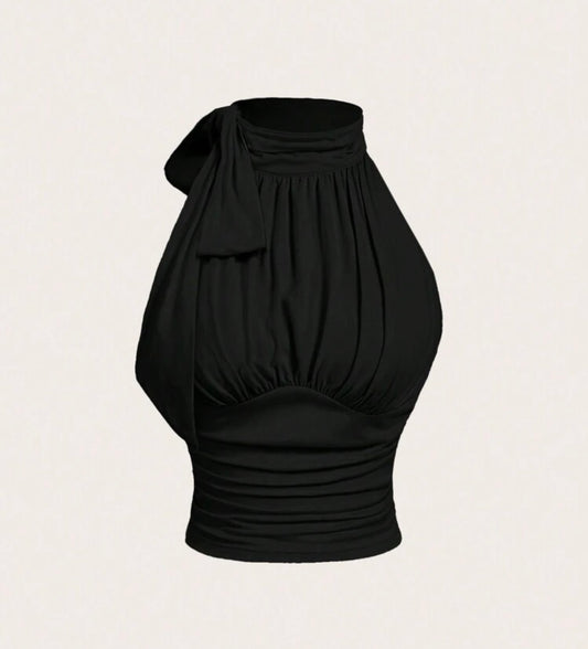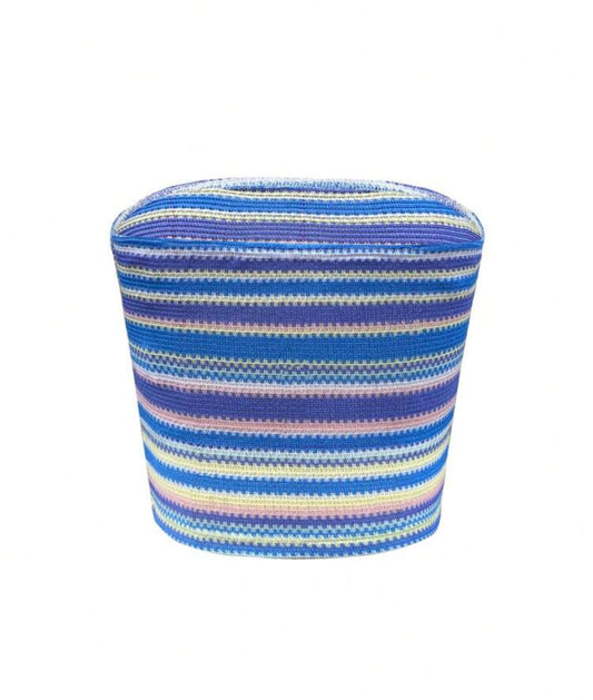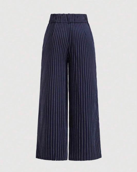 Striped Drawstring Halter Top & Wide-Leg Pants Set
