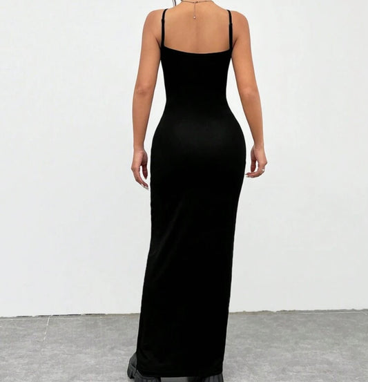 Black Bodycon Maxi Dress With Spaghetti Straps