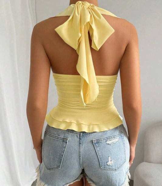 Ruffled Sleeveless Top With V-neckline