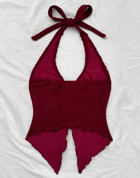 Textured Burgundy Halter Top With Front buckle Detail
