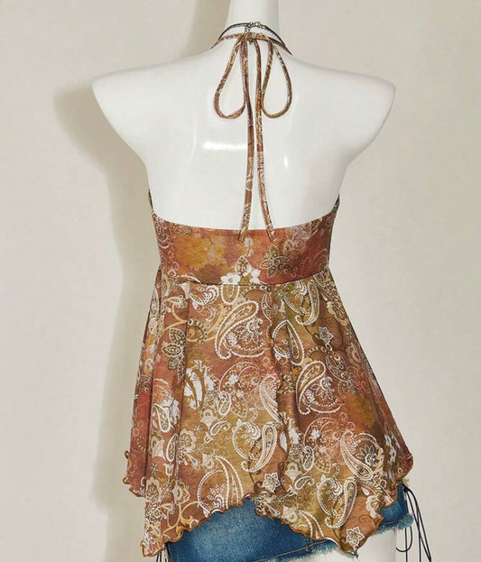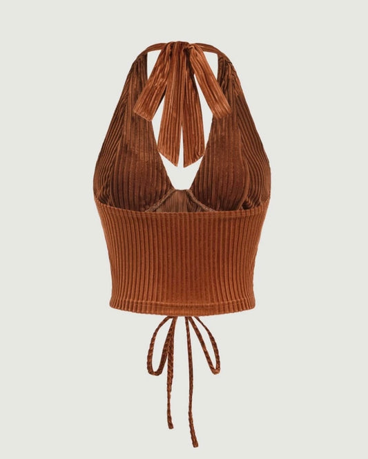 Ribbed Halter Top With Lace-Up Front