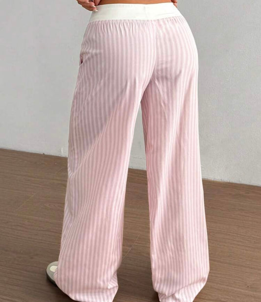 Pink Striped Wide-Leg Lounge Pants & Contrast Waistband
